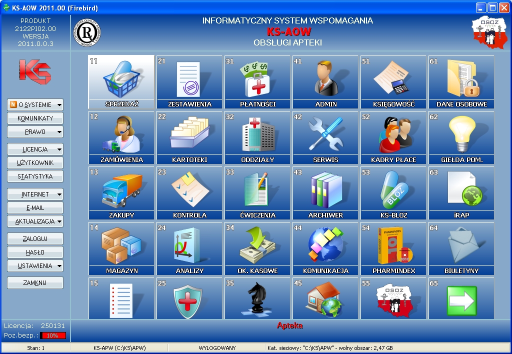 inauguracja systemu - procedura zapewniająca automatyczną konfigurację systemu. Farmaceuta , może sam przeprowadzić inaugurację. Nie jest wymagana wizyta serwisanta,